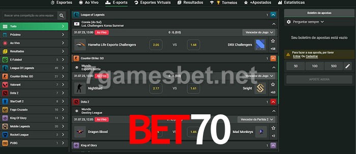 A aposta bet70 oferece aos jogadores a experiência mais conveniente de apostas em eSports!